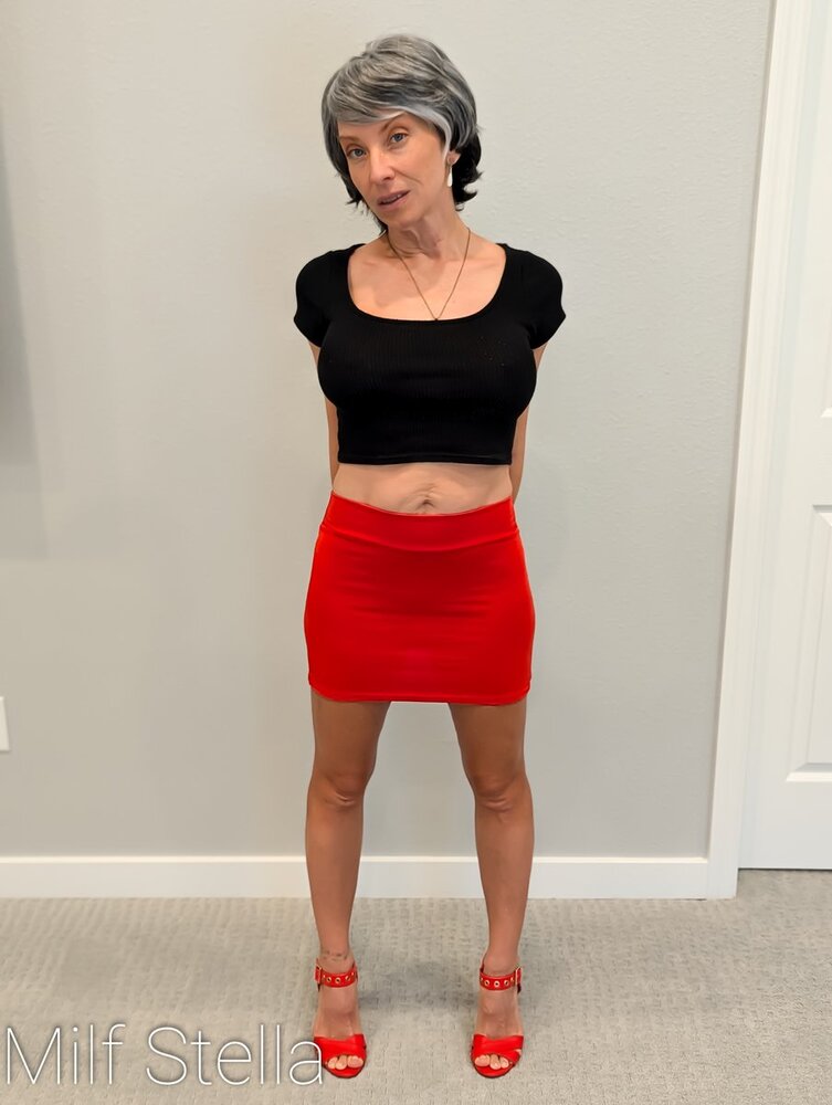 Does red look good on me? #milfstella #petite #lingerie #garterbelt #redlace #booty