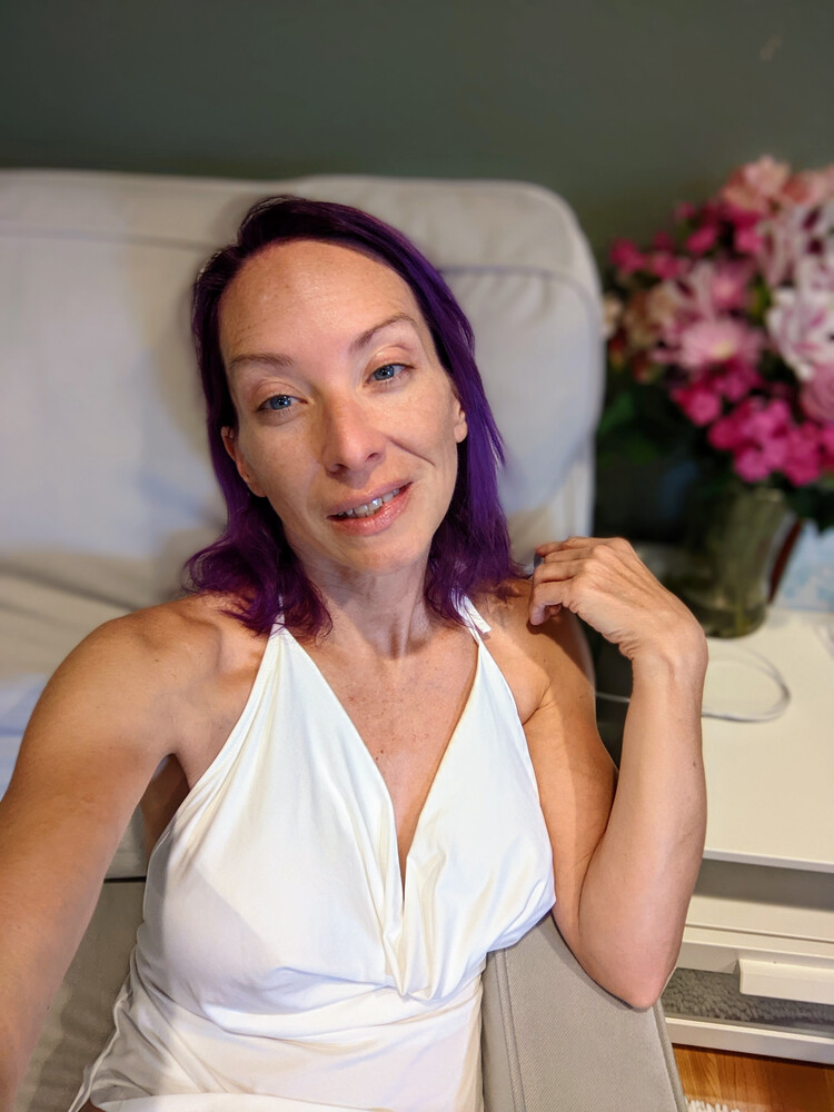 This purple hair really makes my eyes pop! #milfstella #petite #nude #purplehair #wig